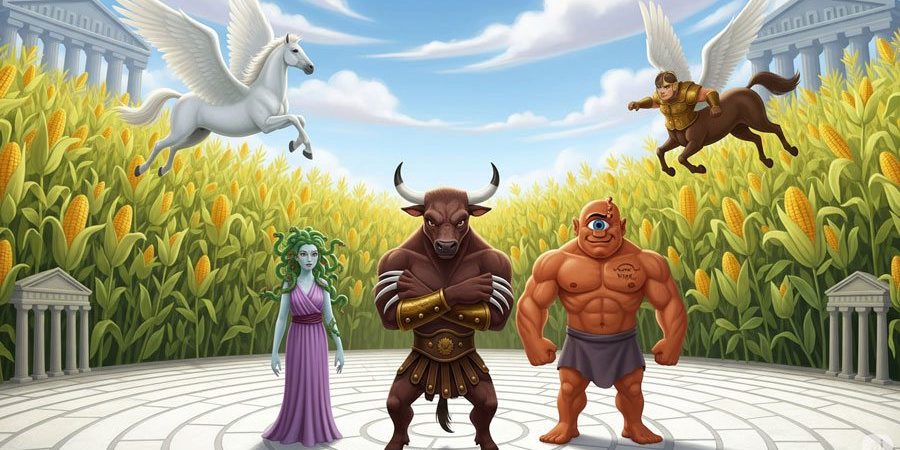 V soboto, 19.7.2025 odpiramo Koruzni labirint Krtina v bližini Ljubljane. Poimenovali smo ga Minotavrov koruzni labirint. Skupaj bomo odkrivali skrivnosti, reševali izzive in se podali v svet antičnih mitov in čudes!
